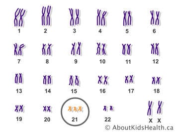 大多數嬰兒出生時有 23 對染色體。而患唐氏綜合症的嬰兒多出一個第 21 號染色體。唐氏綜合症最常見的形式是,患者有 3 個第 21 號染色體,而不是正常的 2 個。這一异常早在嬰兒在子宮中發育時就出現了。